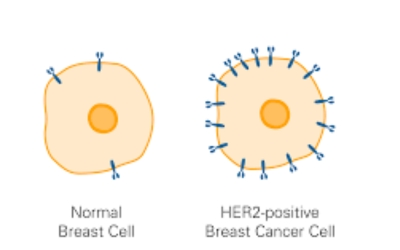 HER2-positive breast cancer overexpresses the HER2 protein, which drives cancer growth. Targeted therapies like Herceptin (trastuzumab) block this protein, improving treatment outcomes. There is new targeted therapy called pertuzumab and antibody drug conjugate ( ADC) called Trastuzumab deruxtecan.