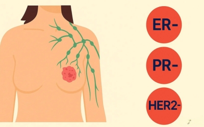 Triple-negative breast cancer (TNBC) is an aggressive form that lacks estrogen, progesterone, and HER2 receptors, making it difficult to treat. It typically requires chemotherapy, with immunotherapy and targeted treatments being considered in some cases.